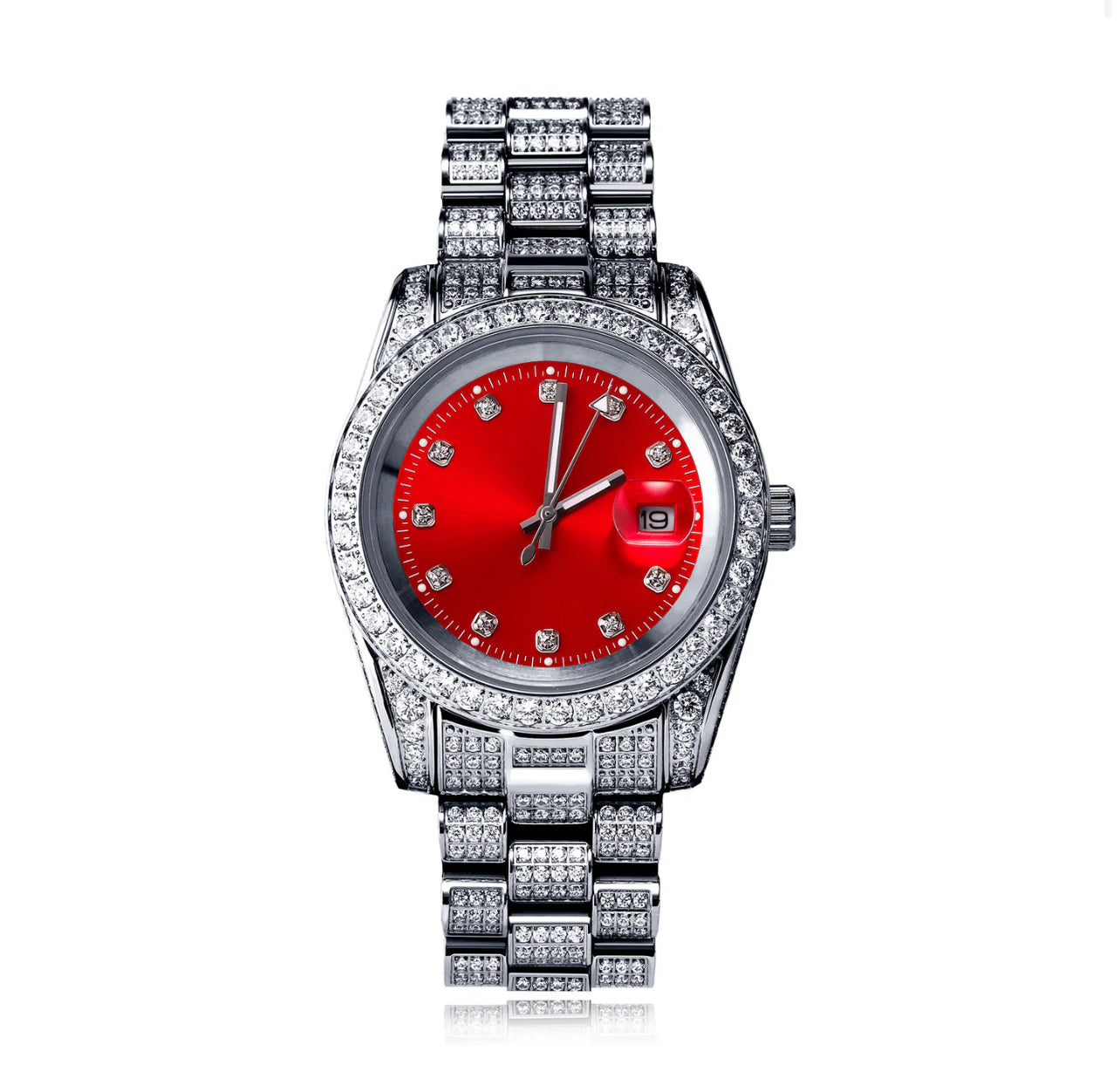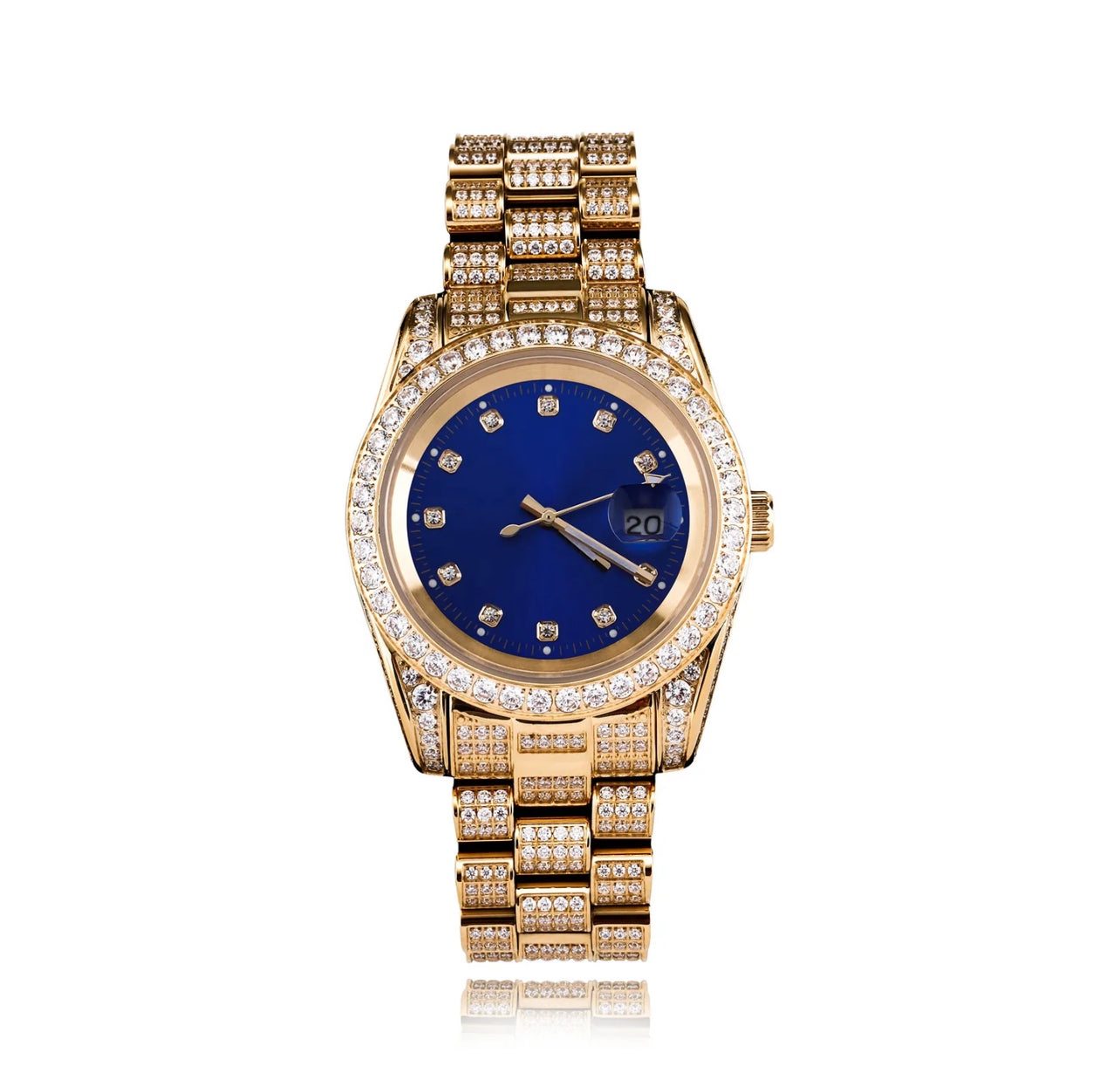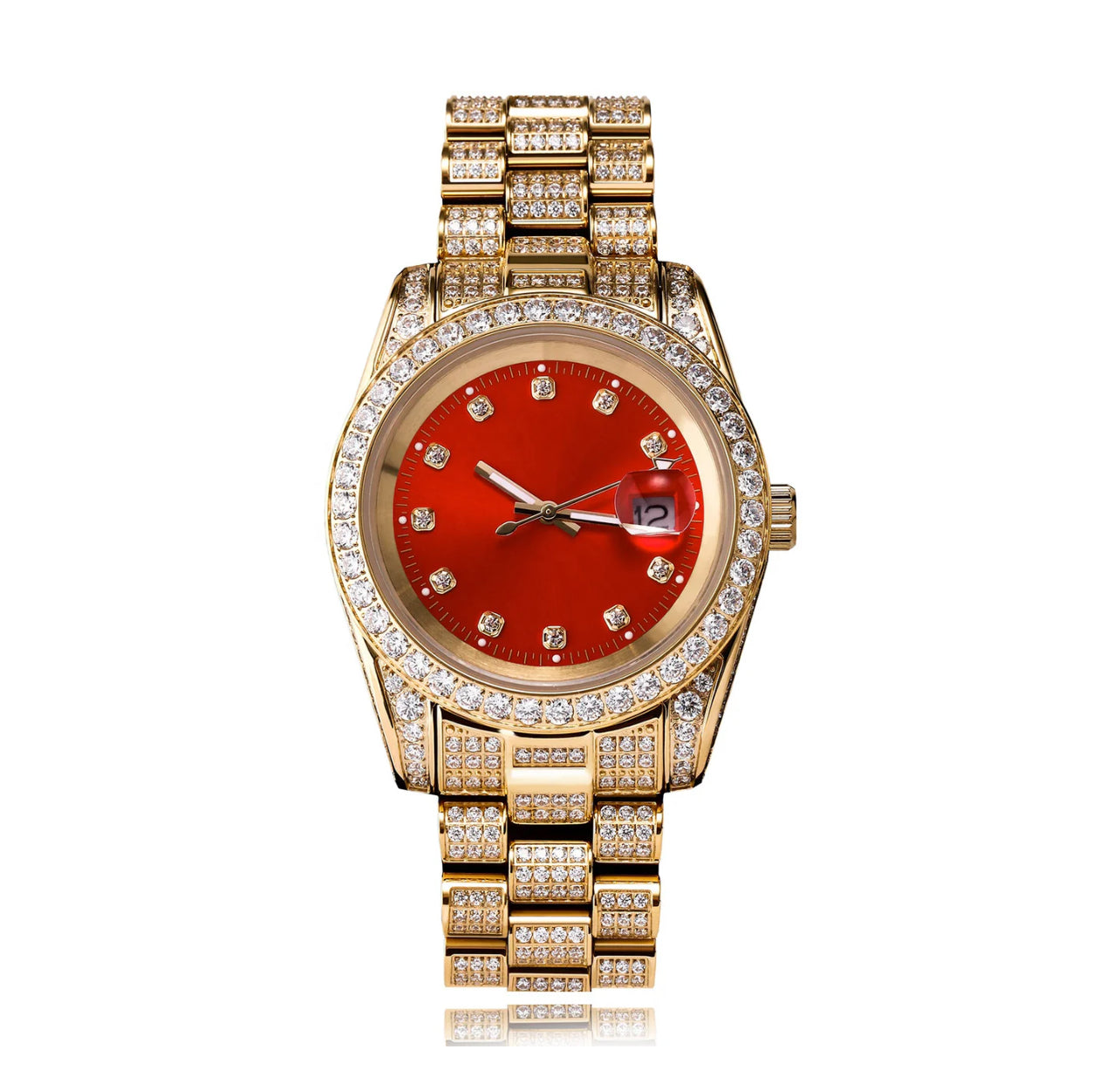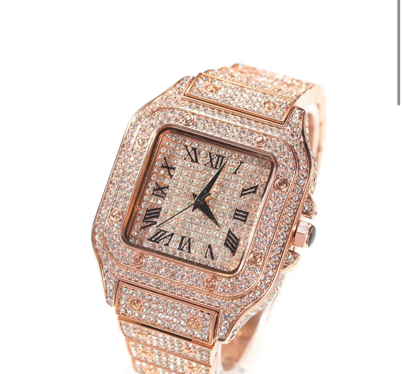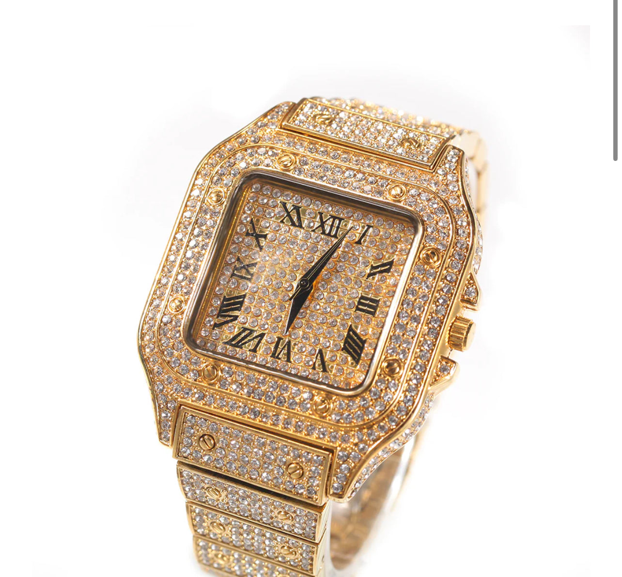 Introducing our stunning iced-out Cartier-inspired watch, a true masterpiece that exudes luxury and sophistication. Available in exquisite 18k rose gold, elegant 18kt yellow gold, and...