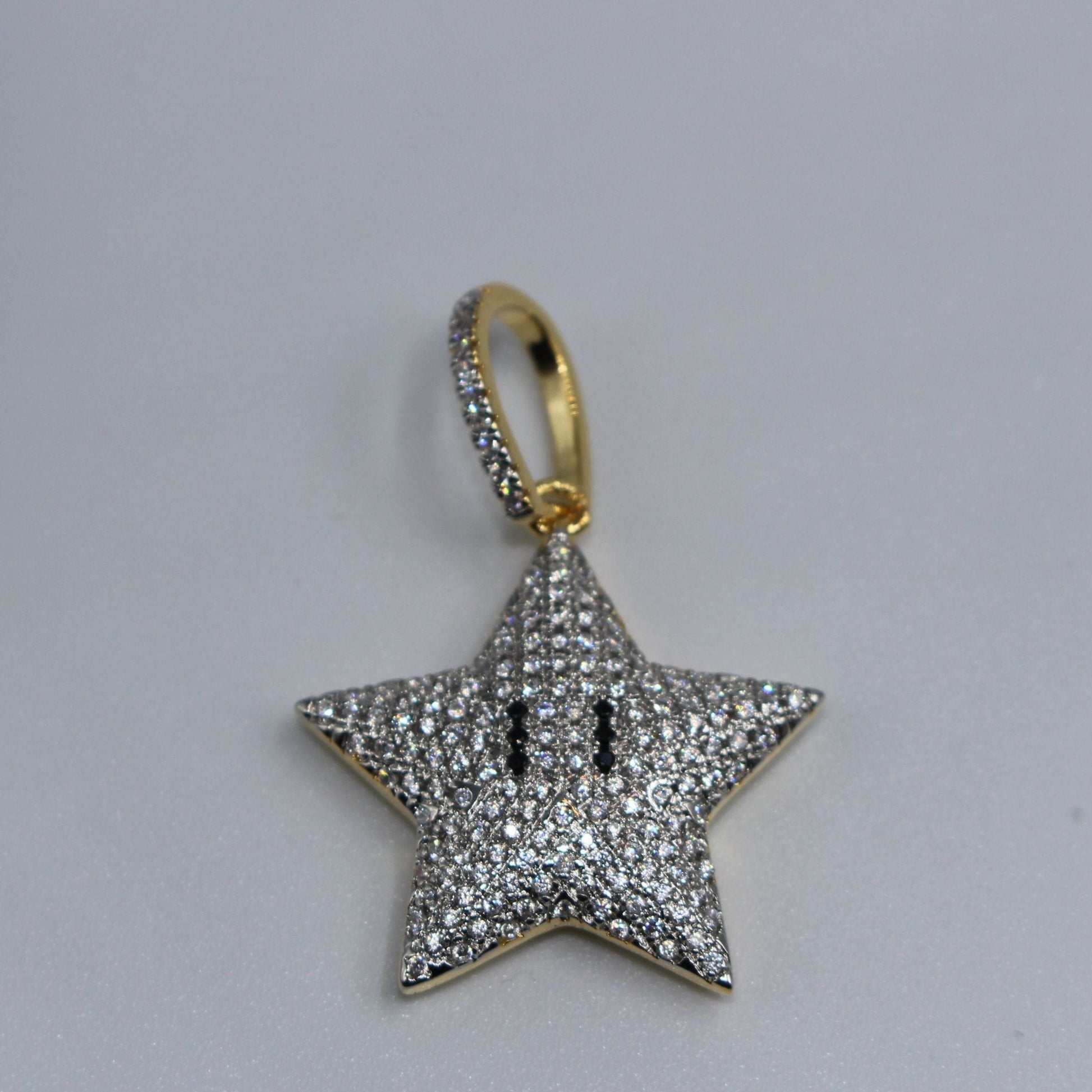 Complx Jewelry crafted this beautiful 18k gold iced star Mario pendant. Bring back your childhood memories with this solid piece.